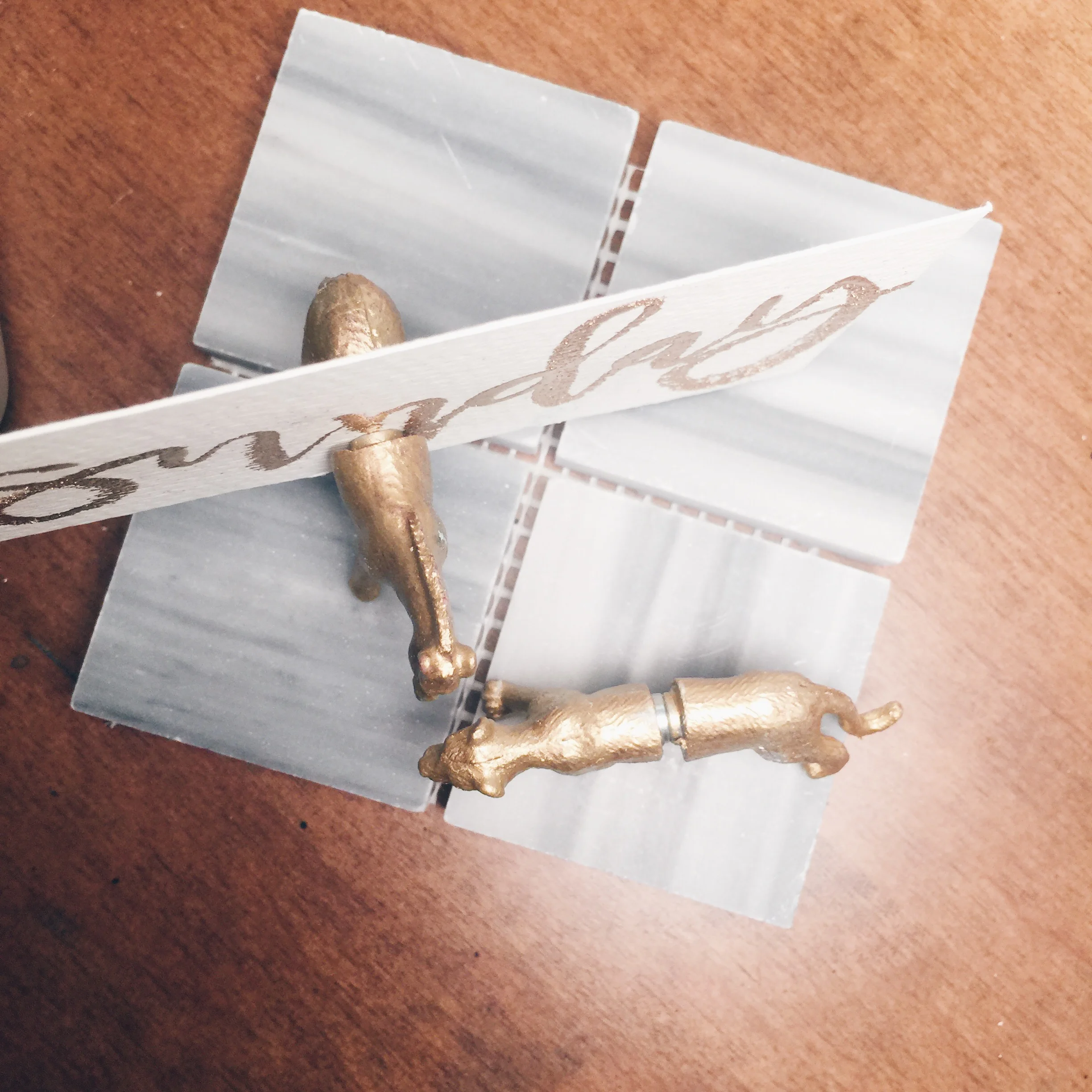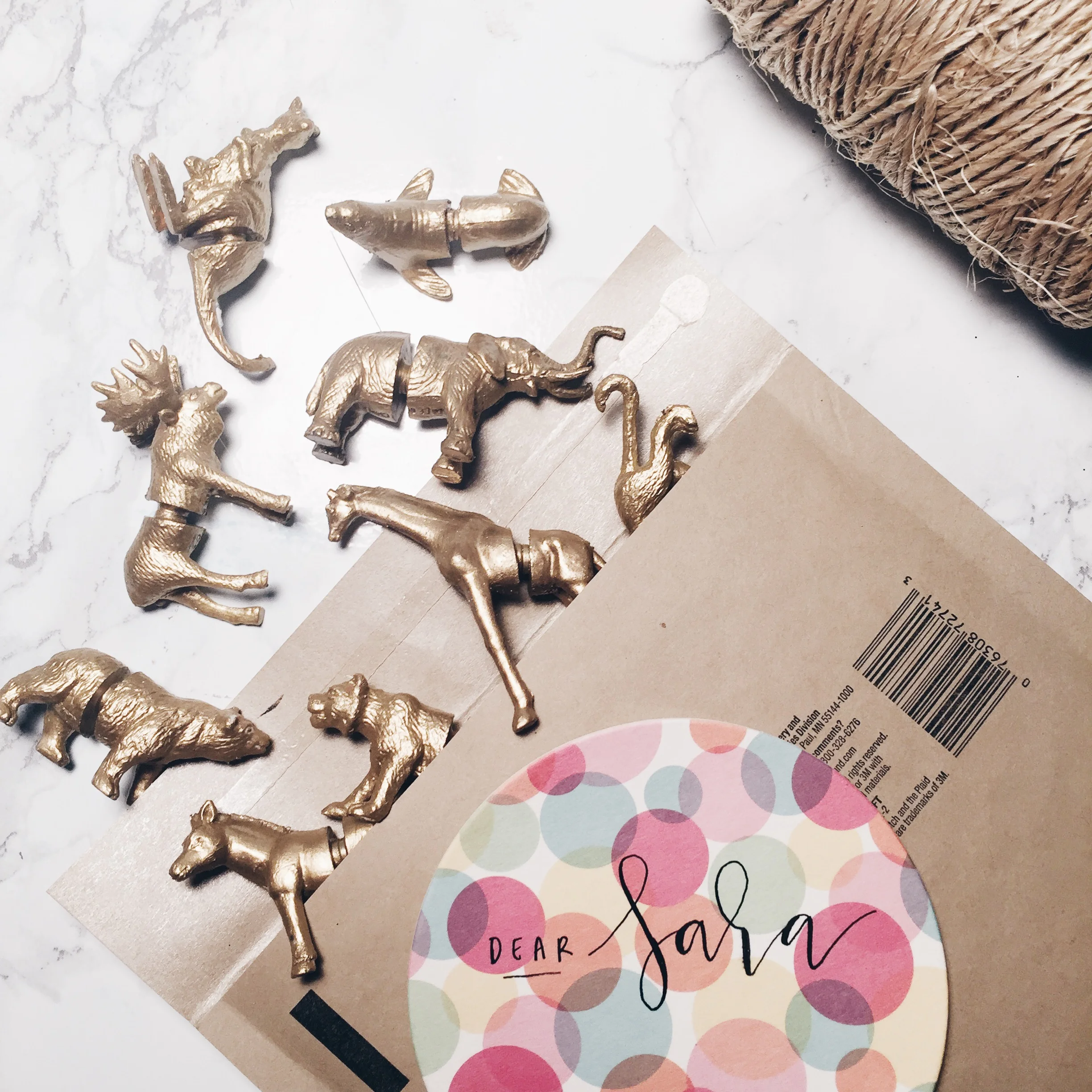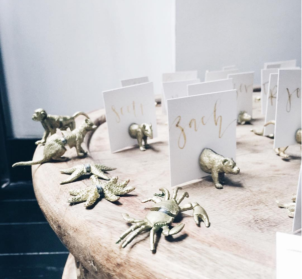 I've always been a huge animal lover, and wanted to incorporate animals into our wedding without it looking too immature. I thought these gold animals were so perfectly playful, I decided to make them for all of my wedding guests!